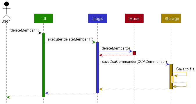 The Sequence Diagram below shows how the components interact with each other for the scenario where the user issues the command deleteMember 1.