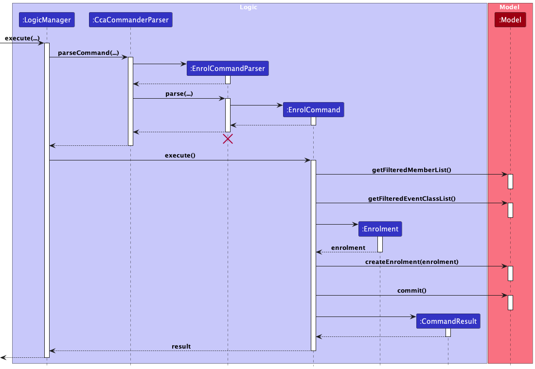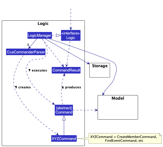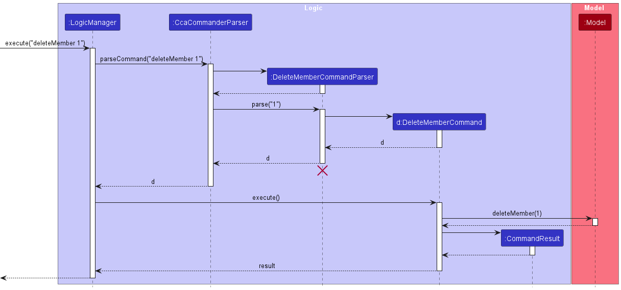 Logicis called upon to execute a command, it is passed to anCCACommanderParserobject which in turn creates a parser that matches the command (e.g.,DeleteMemberCommandParser) and uses it to parse the command. - This results in a