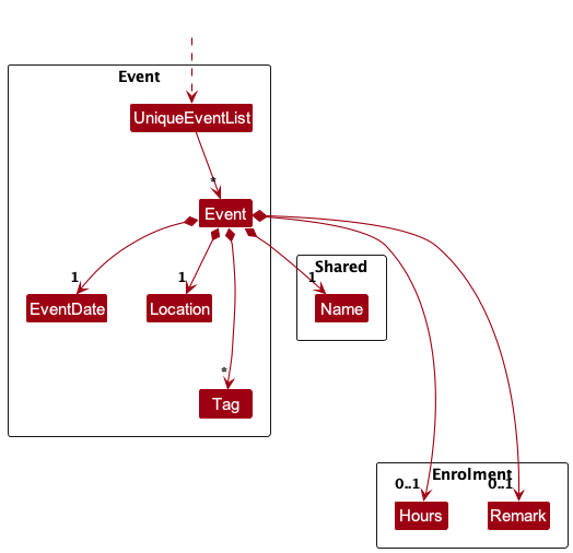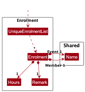 - Added a class (Enrolment) to relate 2 classes (Member & Event) - new feature not in AB3
